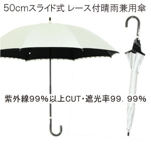 【送料無料 一部地域除く】50cm 8本骨 スライド式 シルバーコーティング レース付 [晴雨兼用傘・日傘 ]