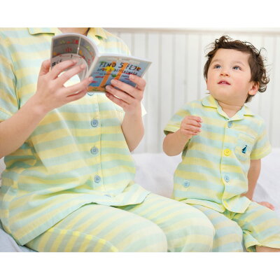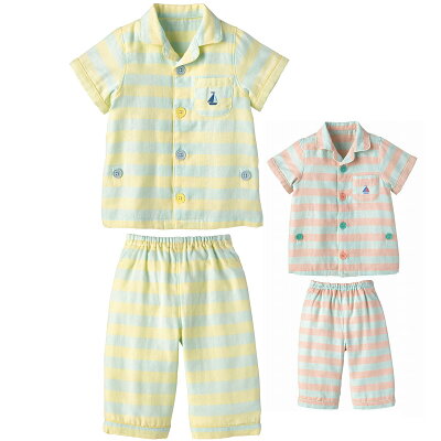 半袖ガーゼパジャマ(ボーダー){男の子 女の子}《コンビミニ Combi mini》【80cm 90cm 100cm 110cm 120cm 130cm 】 | ギフト ベビー服 子供服 イエロー ガーゼ 夏 夏服 キッズ パジャマ ベビー 赤ちゃん 子供 子ども かわいい おしゃれ 子供用パジャマ 保育園 こども 出産祝い